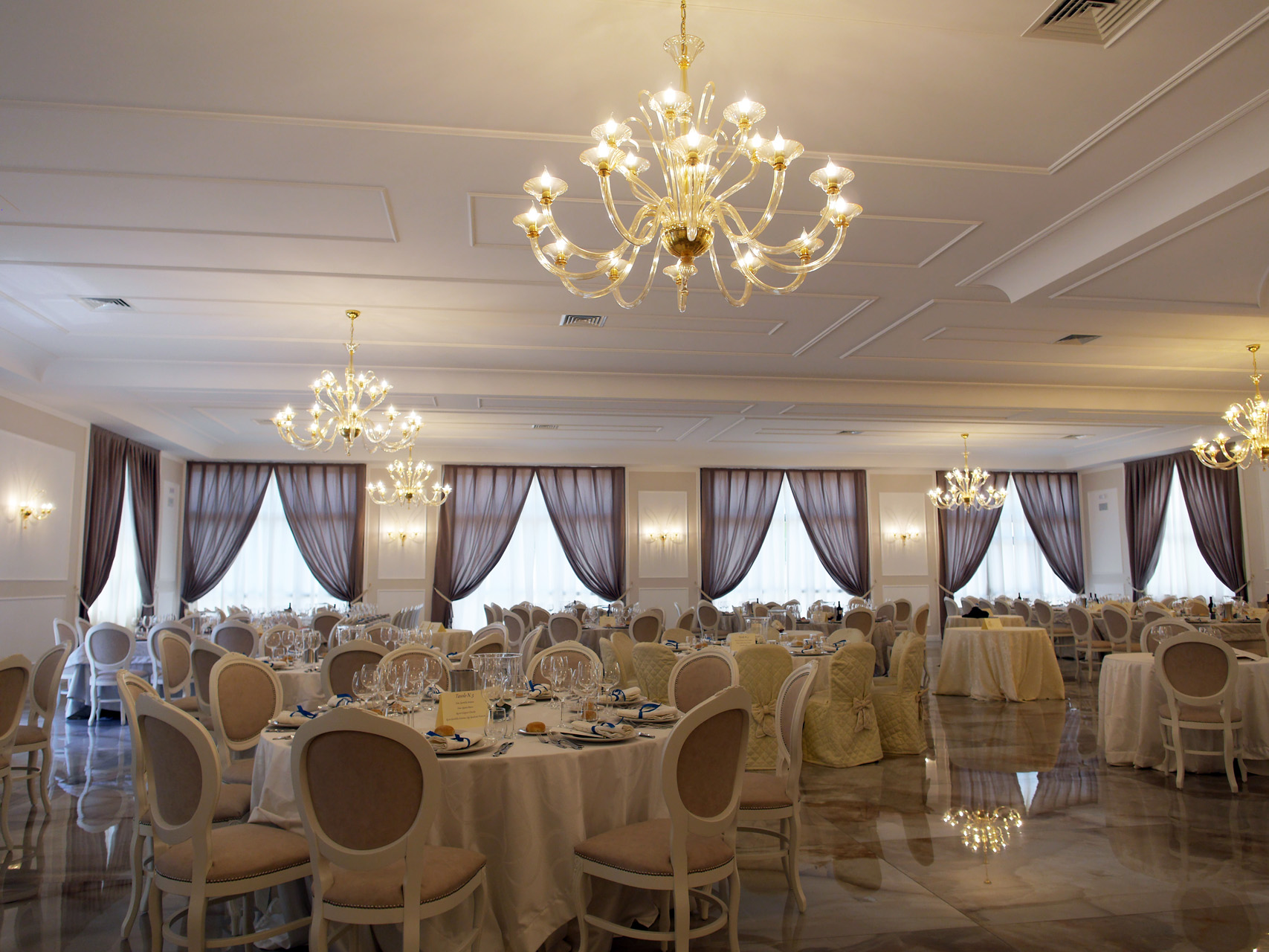 Dalla struttura originaria del XVIII sec. caratterizzata da piccoli e classici ambienti, dalla copertura a botte ed a stella, si passa ad una più moderna, maestosa e raffinata sala che ospita fino a 350 invitati.